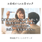 高松市 中◯様 妊活整体コウノトリコース 30歳後半になってからの妊活は、 気持ちを保つのが本当に大変でした。 治療の度に期待して、結果で落ち込んで… その繰り返しに疲れていました。 そんな中、少しでも身体 […]