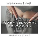 高松市 金◯様 肋骨矯正 昔から「くびれができにくい体質」と思っていました。 でも実際は、肋骨の開きが原因のこともあると聞いて半信半疑で受けてみました。 施術後に鏡を見たとき、ウエストのラインが内側に入っていて本当にびっ […]