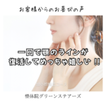 高松市 宇◯様 超小顔矯正 昨日、例のグリーンステアーズさん行ってきました。 産後からずっと顔のむくみが取れんで悩みよったんやけど、一回で顎のラインが復活してめっちゃ嬉しい!! 子どもを旦那に預けて行くから、リラックスで […]
