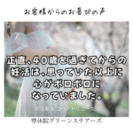 高松市 N様 妊活整体 コウノトリコース 正直、40歳を過ぎてからの妊活は、思っていた以上に心がボロボロになっていました。 採卵がうまくいかなかった日、頭では解っていましたが、涙が溢れてきて暫く止まりませんでした。 そん […]