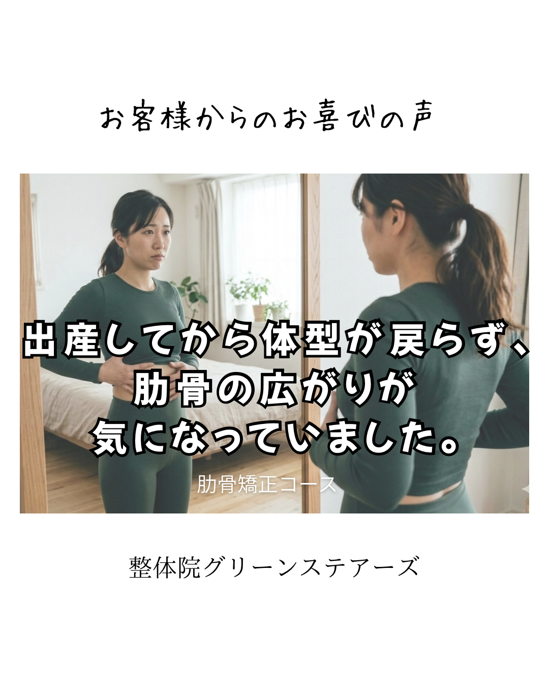 出産してから体型が戻らず、特に肋骨の広がりが気になっていました。