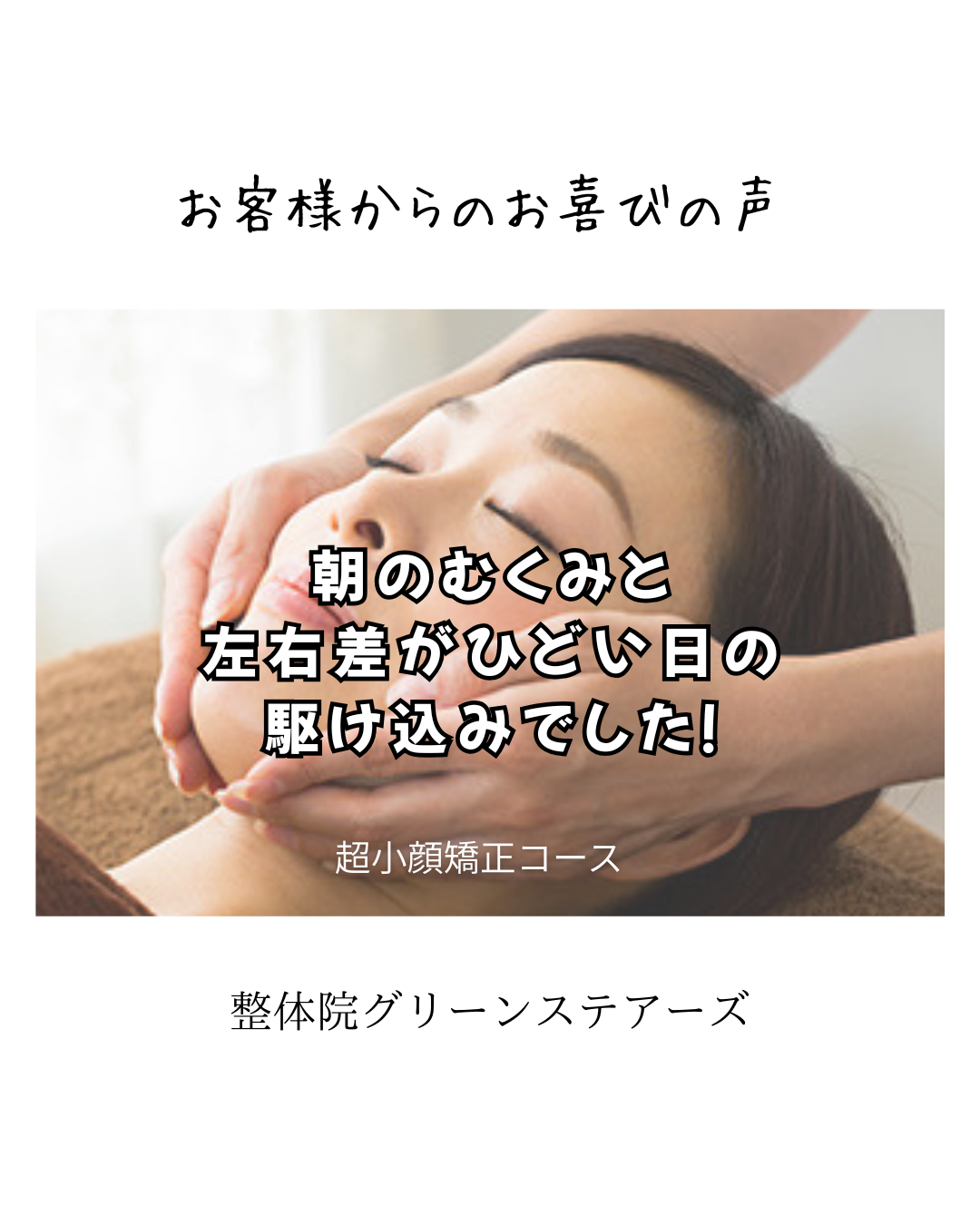 朝になると片側だけむくんで見える日が多くて、空きが出たという事で、仕事前に思い切ってお願いしました。