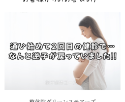 三豊市 K様 逆子整体 妊娠32週で逆子と診断され、不安で眠れない日が続いていました。 帝王切開の話も出て、気持ちは沈むばかり。 そんな中、グリーンステアーズさんの逆子整体を見つけて、年末年始のお休み中でしたが「ご不安で […]